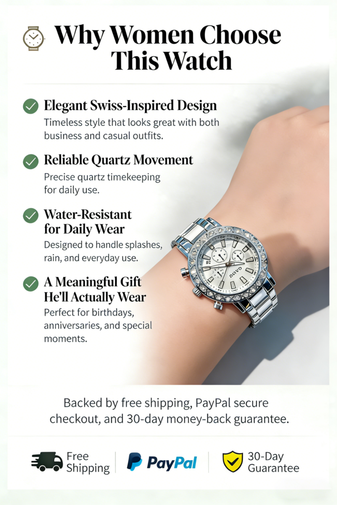 Crafted with attention to detail, the watch combines stunning aesthetics with practical functionality. Whether you’re attending a formal dinner or running errands, this piece complements your wardrobe seamlessly while making an impression.