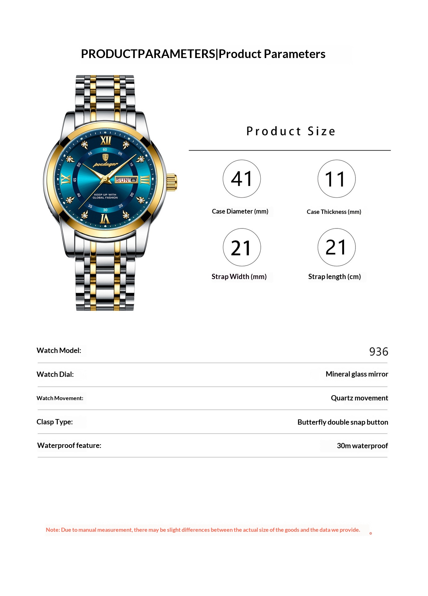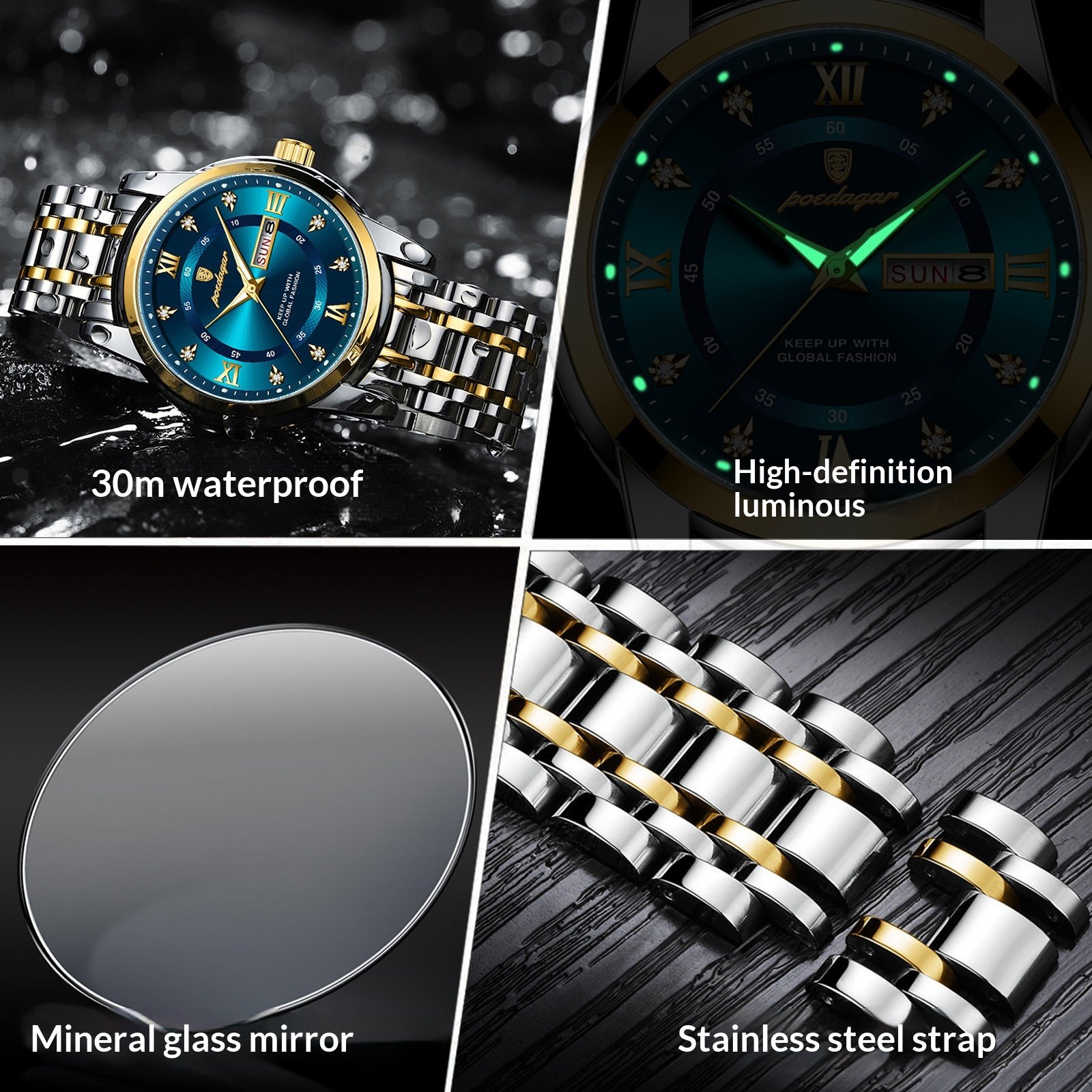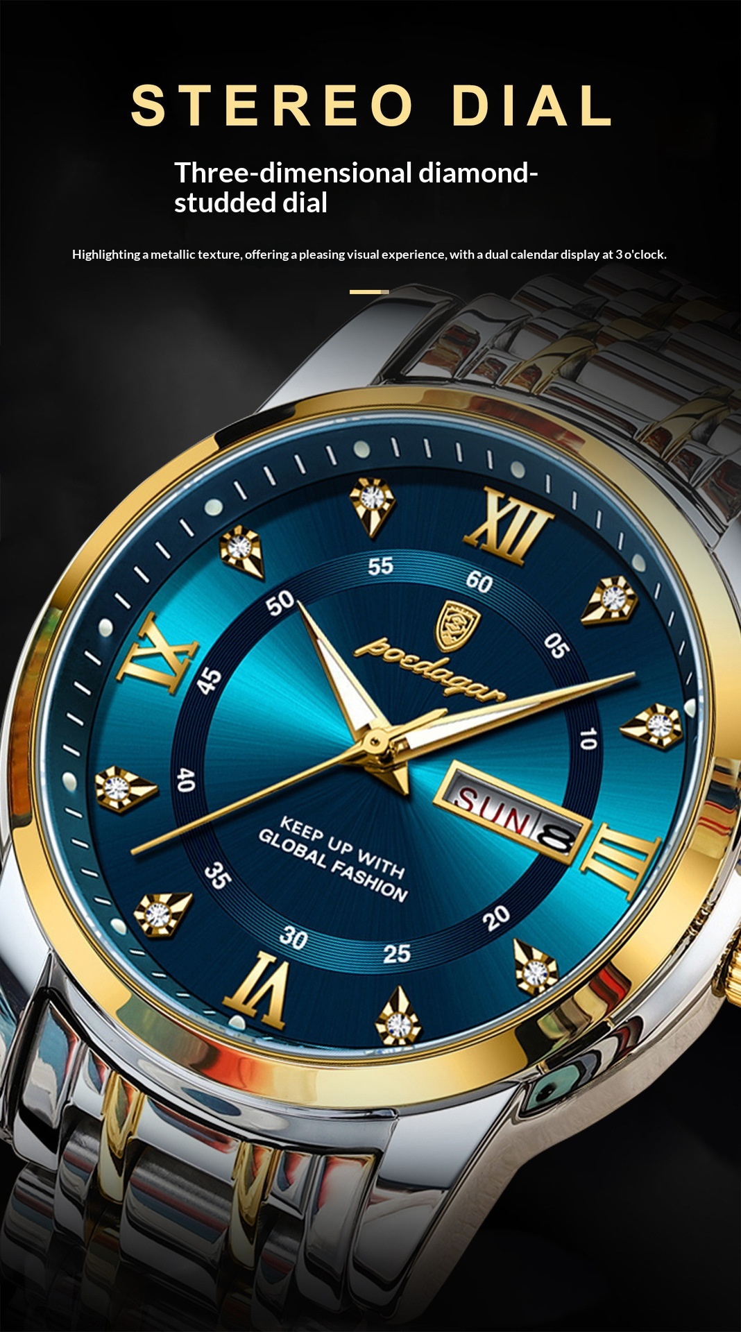 New Swiss Men’s Waterproof Quartz Watch – Dual Calendar, Luminous Dial, & Precision Timekeeping
