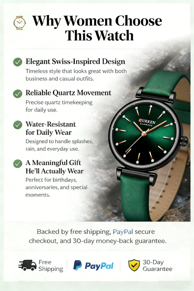 Timeless Style with Modern Practicality Women’s Retro Quartz Watch is your perfect vintage-inspired accessory—blending timeless charm with modern practicality for the stylish lady. Crafted with a soft leather strap, this timepiece adds a touch of nostalgia to any outfit, whether you’re dressing up for a brunch date or keeping it casual at work.